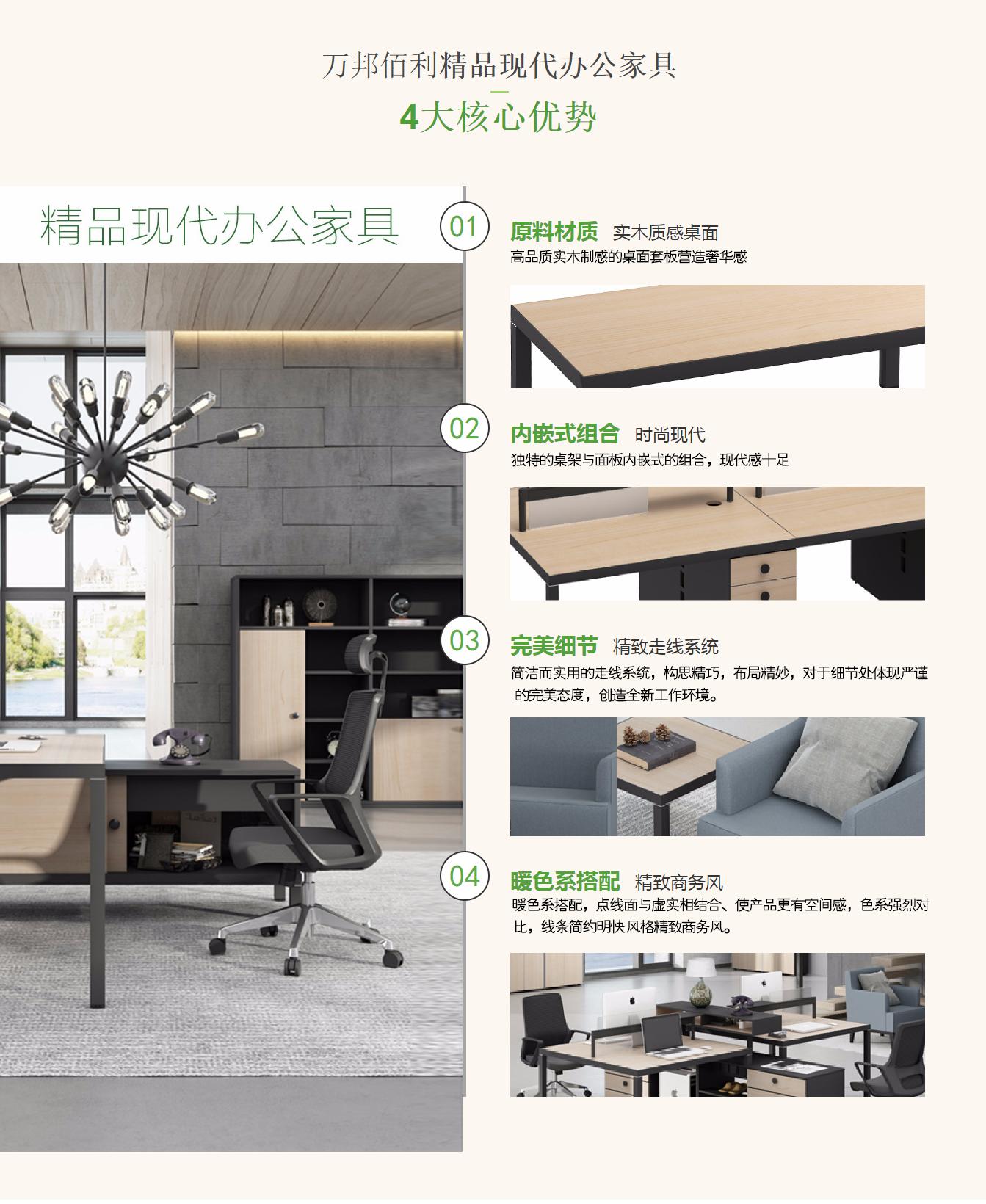 北京萬邦佰利家具有限公司是一家專注于辦公家具生產(chǎn)、批發(fā)銷售的公司。銷售的產(chǎn)品有:班臺、經(jīng)理桌椅、會議桌椅、員工桌椅、文件柜、密集柜、視屏?xí)h桌、辦公沙發(fā)、學(xué)校家具、銀行家具、戶外家具、醫(yī)院家具等產(chǎn)品,公司自成立以來始終堅(jiān)持以人才為本、誠信立業(yè)的經(jīng)營原則,堅(jiān)持用企業(yè)文化提升企業(yè)核心競爭力,使企業(yè)在發(fā)展中處于良好的形象.我公司主要服務(wù)于企業(yè)單位的家具定制服務(wù),為各大企業(yè)量身定做整體環(huán)境的家具設(shè)計(jì)全程服務(wù),我們的整體產(chǎn)品服務(wù)...